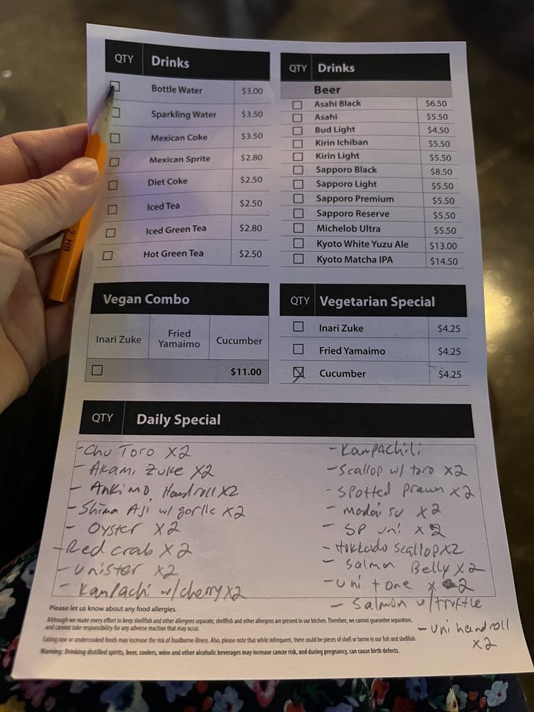 Hatsuyuki Handroll Bar in Fort Worth, TX offers an intimate and trendy setting with all bar seating, providing a unique dining experience. Customers rave about the impeccable service and fresh handrolls, sushi, and sashimi. The menu boasts a variety of options, including special combos and a rotating selection of fresh fish from Japan. Favorites like the salmon belly, chu toro, and Uni Premium are highly recommended. The hand roll combos are a great value and a must-try for sushi enthusiasts. With limited seating, it's advisable to arrive early to secure a spot. The attentive staff and skillful chefs ensure a memorable dining experience. Don't miss out on the fresh and perfectly balanced flavors at Hatsuyuki Handroll Bar.